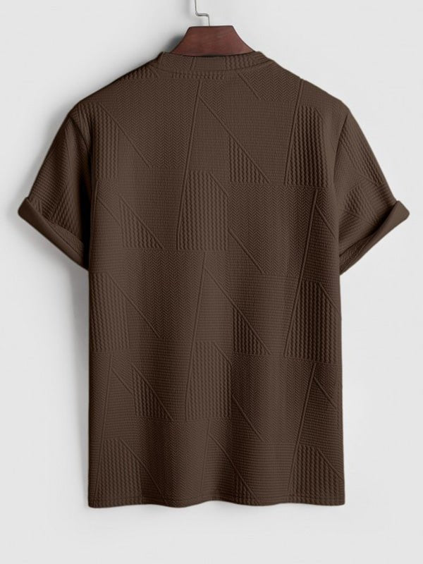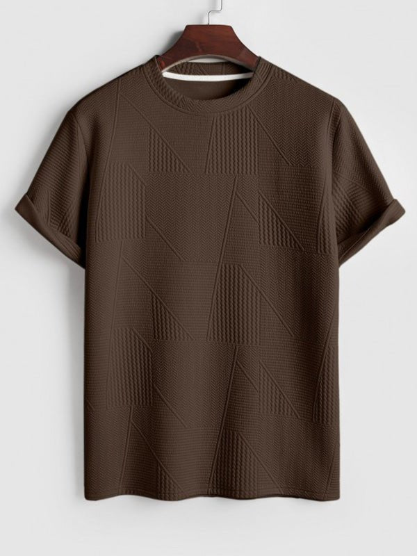 Geometric jacquard round neck T-shirt + shorts 2-piece set-COFFEE