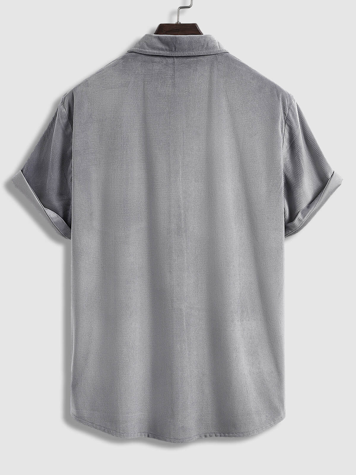 Men's Brushed Corduroy Button-Up Shirt Casual Shorts Set