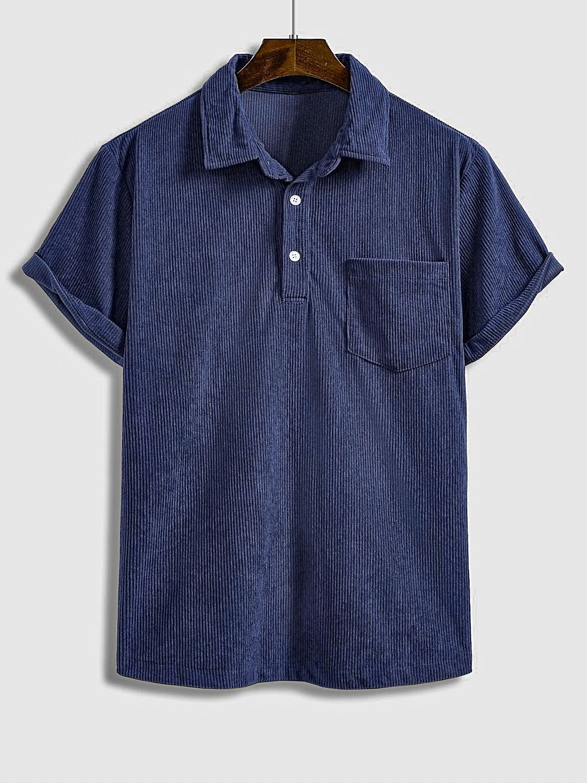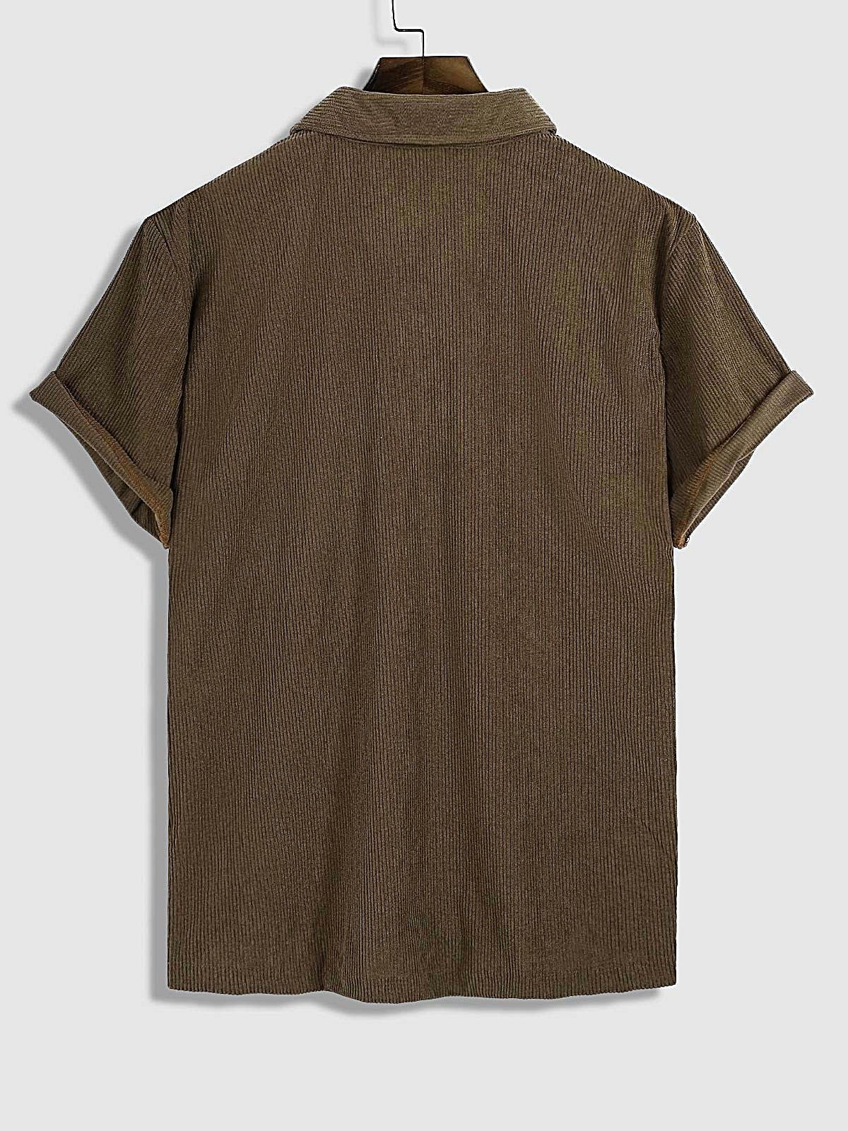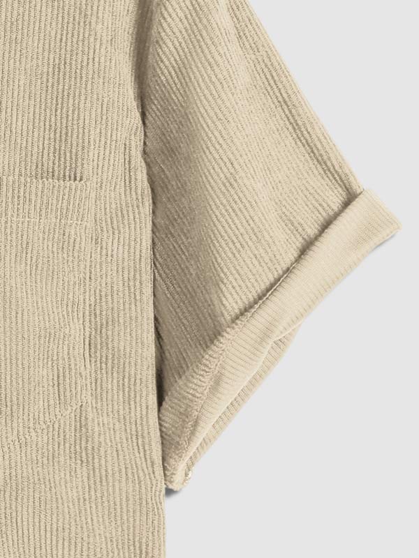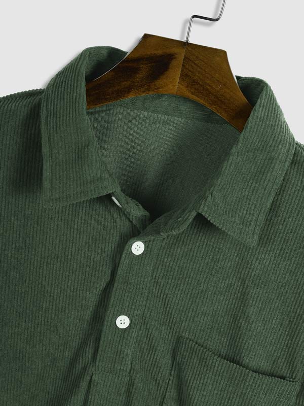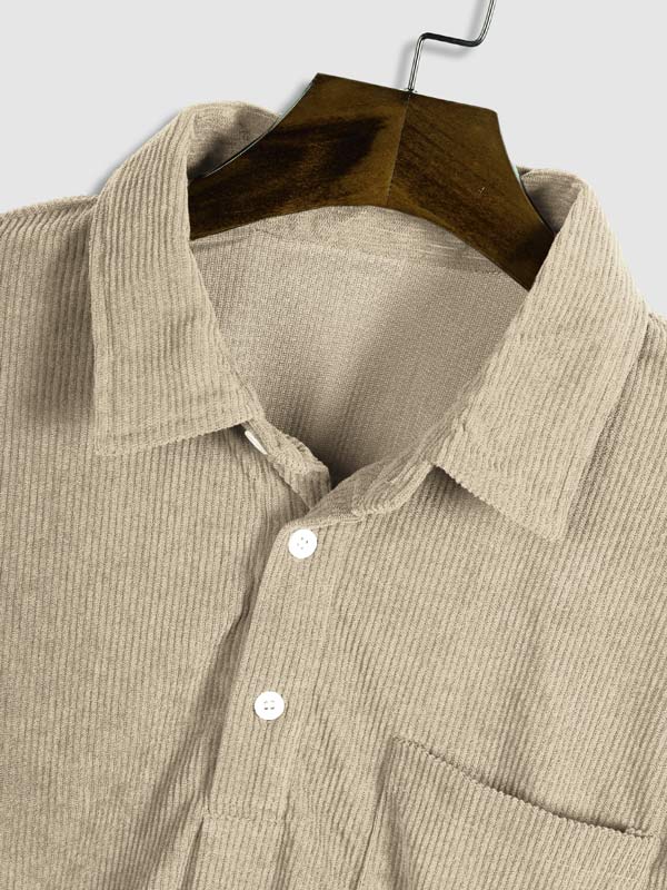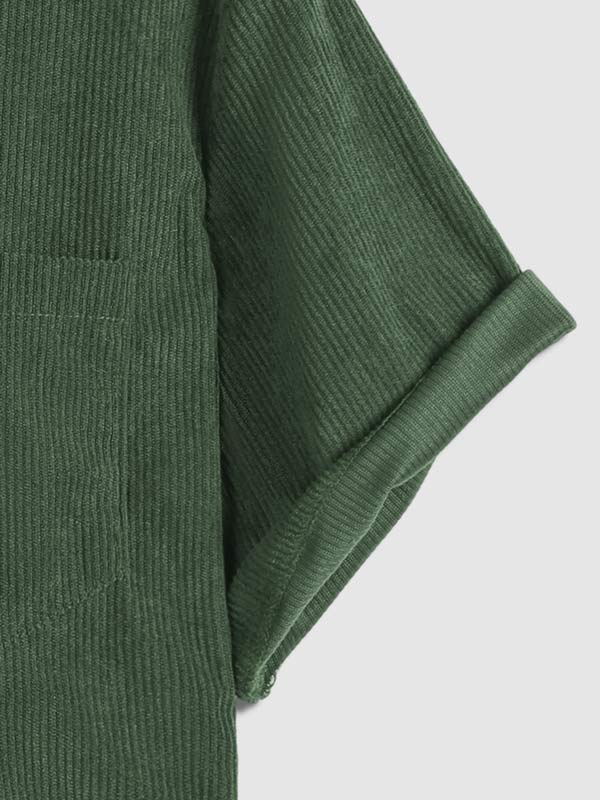 Men's Corduroy Half Button Short Sleeve Shirt Casual Shorts Set