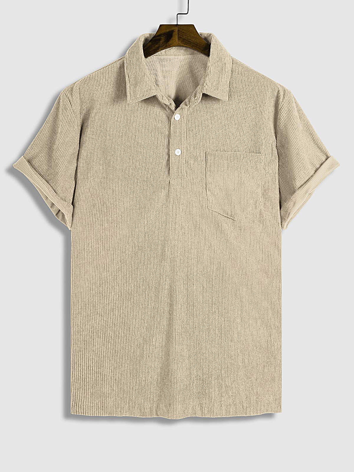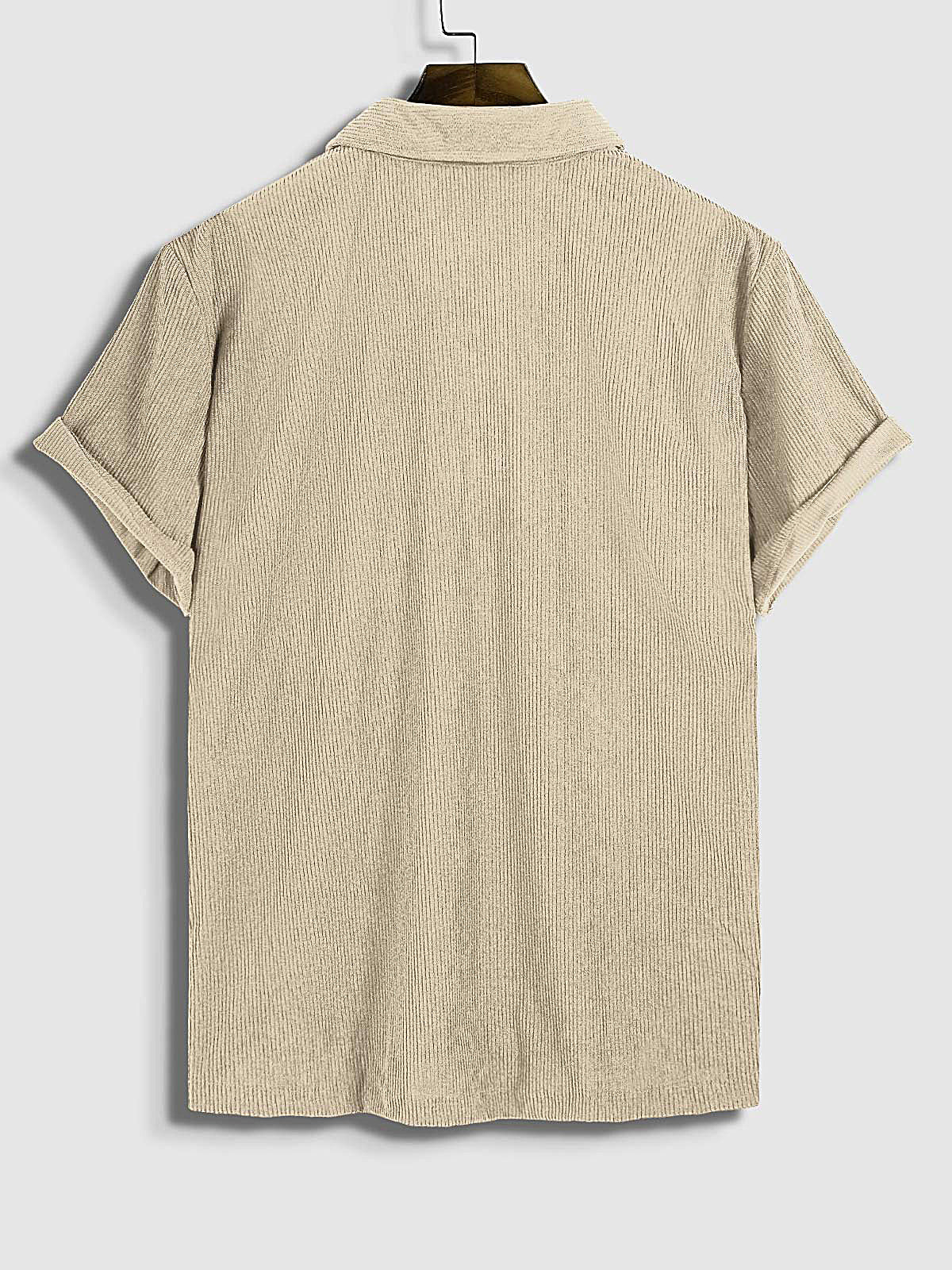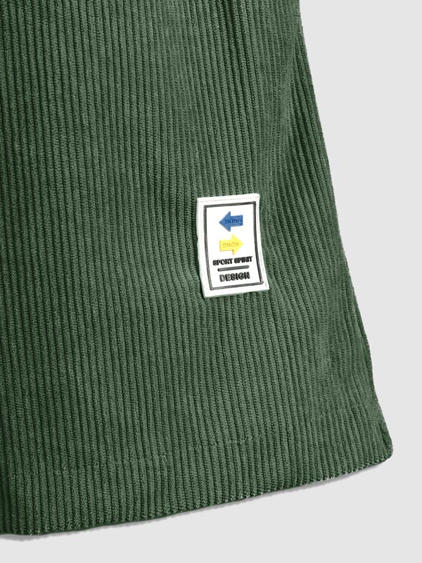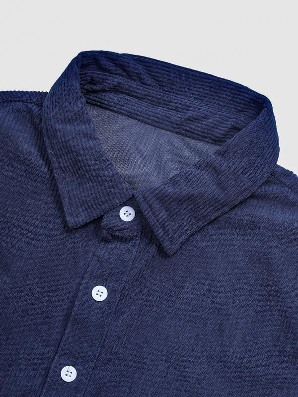 Men's Corduroy Half Button Short Sleeve Shirt Casual Shorts Set