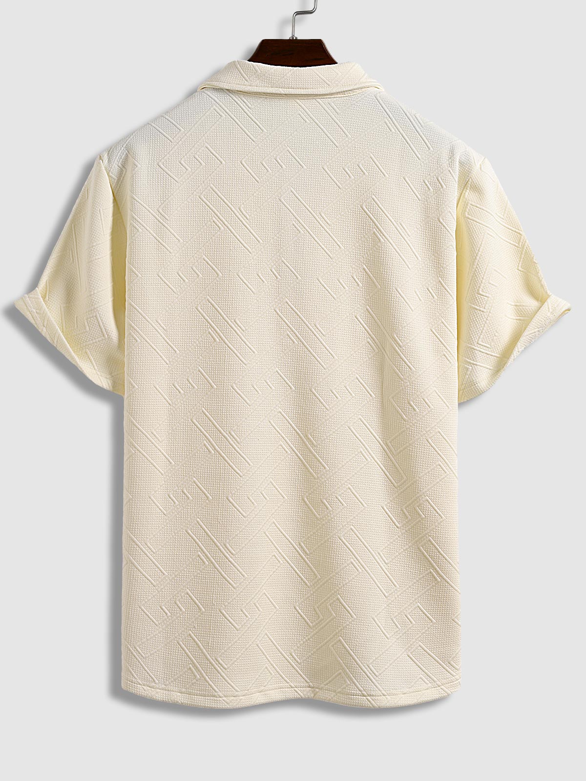 Men's geometric jacquard lapel short sleeve polo shorts set