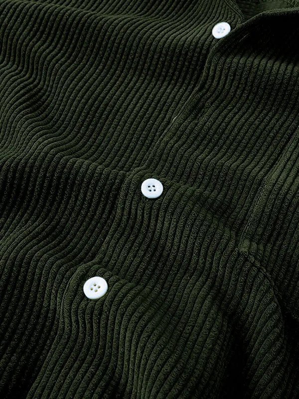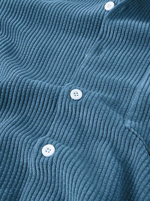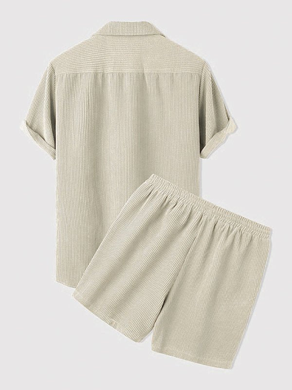 Men's Retro Corduroy Casual Lapel Solid Button Short Sleeve Shirt Shorts Set