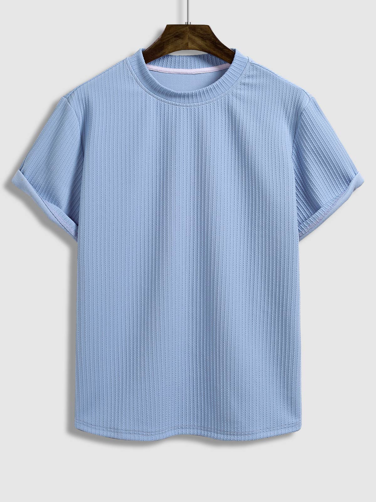Men's striped texture short-sleeved T-shirt casual shorts set