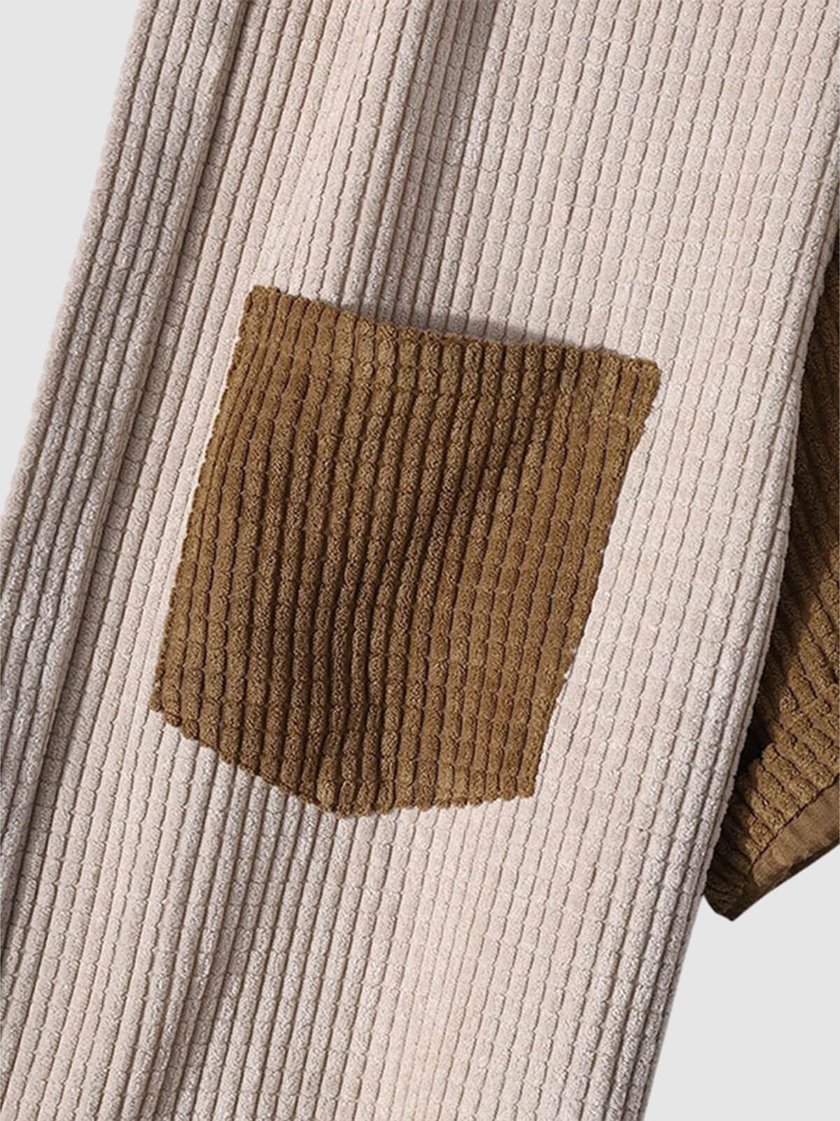 Men's Waffle Corduroy Casual Short Sleeve Shorts Set