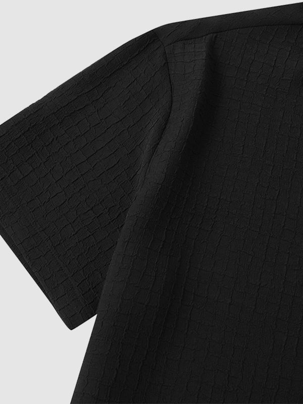Men's irregular texture striped solid color casual short-sleeved shirt