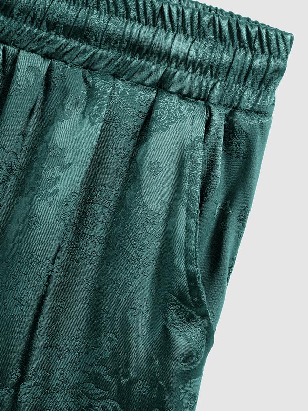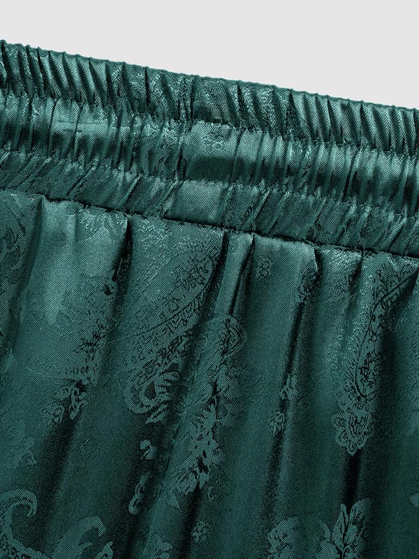Men's Satin Paisley Pattern Cuban Collar Shirt Casual Shorts Set